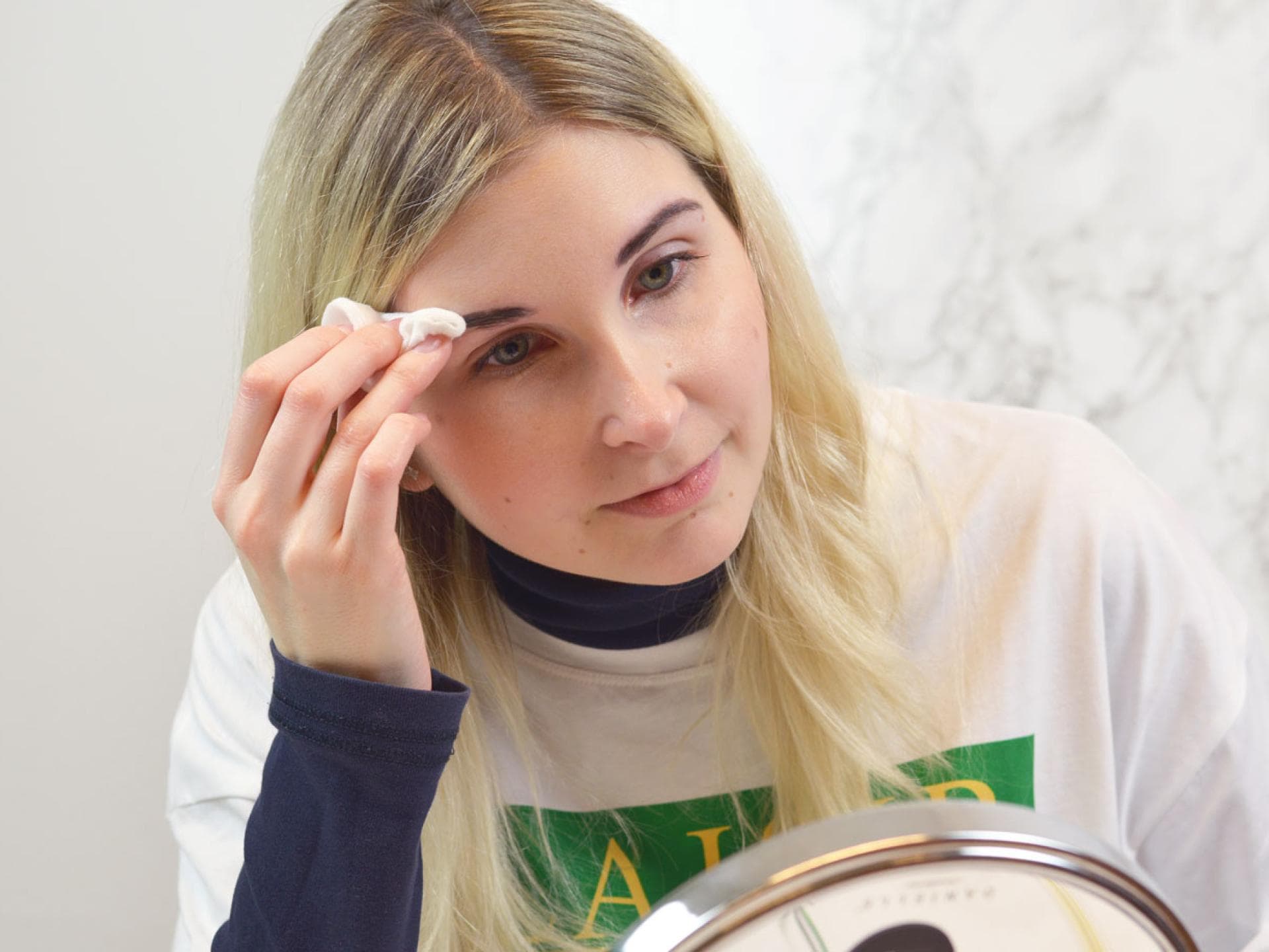 Zum Schluss tragt ihr die Farbe vorsichtig mit einem feuchten Wattepad ab und fertig sind die Wow-Brows.😍
