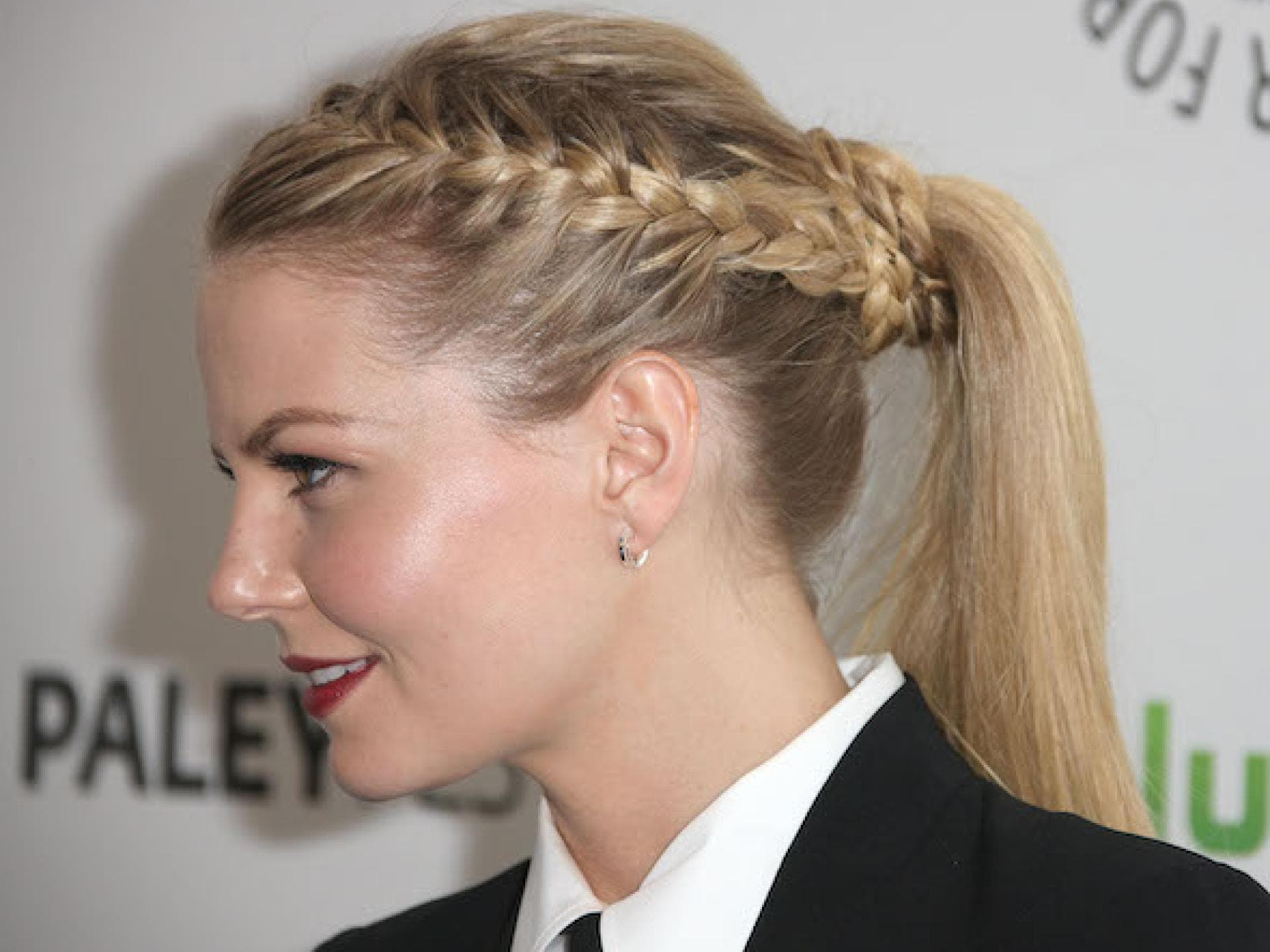 Eine der einfacheren Flechtfrisuren ist der halbgeflochtene Pferdeschwanz. Ihr braucht nicht einmal viele Tools, um ihn zaubern. Mit unserer Anleitung lernt ihr das Flechten ganz schnell. Teilt zuerst eure Haare in zwei Partien, so wie ihr euren Scheitel grade tragt. Nehmt dann drei kleine gleich große Strähnen vorne am Kopf und flechtet sie zu einem normalen holländischen Zopf. Wenn ihr am Ende angekommen seid, dann könnt ihr den kleinen Bauernzopf mit einem Band vorläufig befestigen. Nehmt nun den Rest der losen Haare vom Oberkopf und den kleinen geflochten Zopf zusammen und bindet sie mit einem Haargummi zu einem hohen Pferdeschwanz. Fertig ist euer Flechtzopf mit einem süßen Detail.