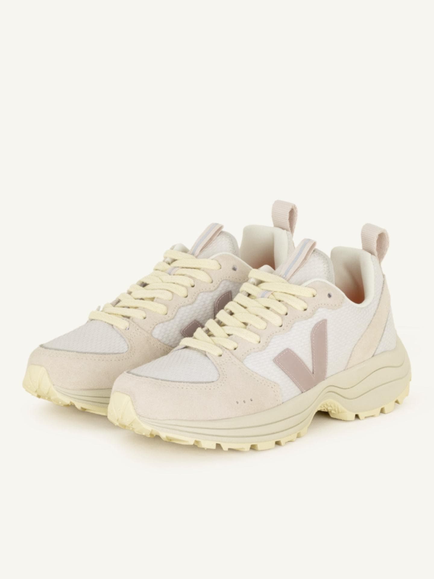 Außerdem können wir jetzt aufatmen, denn Chunky-Sneaker bleiben uns zum Glück erhalten und liegen im Frühling 2023 noch absolut im Trend. Die Turnschuhe mit der dicken Plateausohle kommen allerdings in der kommenden Saison in moderneren Varianten und Farben daher, wie unser Favorit von Veja in Hellrosa. Dabei lieben wir die Statement-Sneaker in der Kombination zu femininen Midikleidern oder verkürzten Jeans. Last but not Least sind Running-Sneaker das absolute Must-have in jeder Garderobe, wie das lila Modell von Asics, das wir nicht nur beim Laufen ausführen, sondern auch im Office, Cafè oder beim Shopping-Bummel.