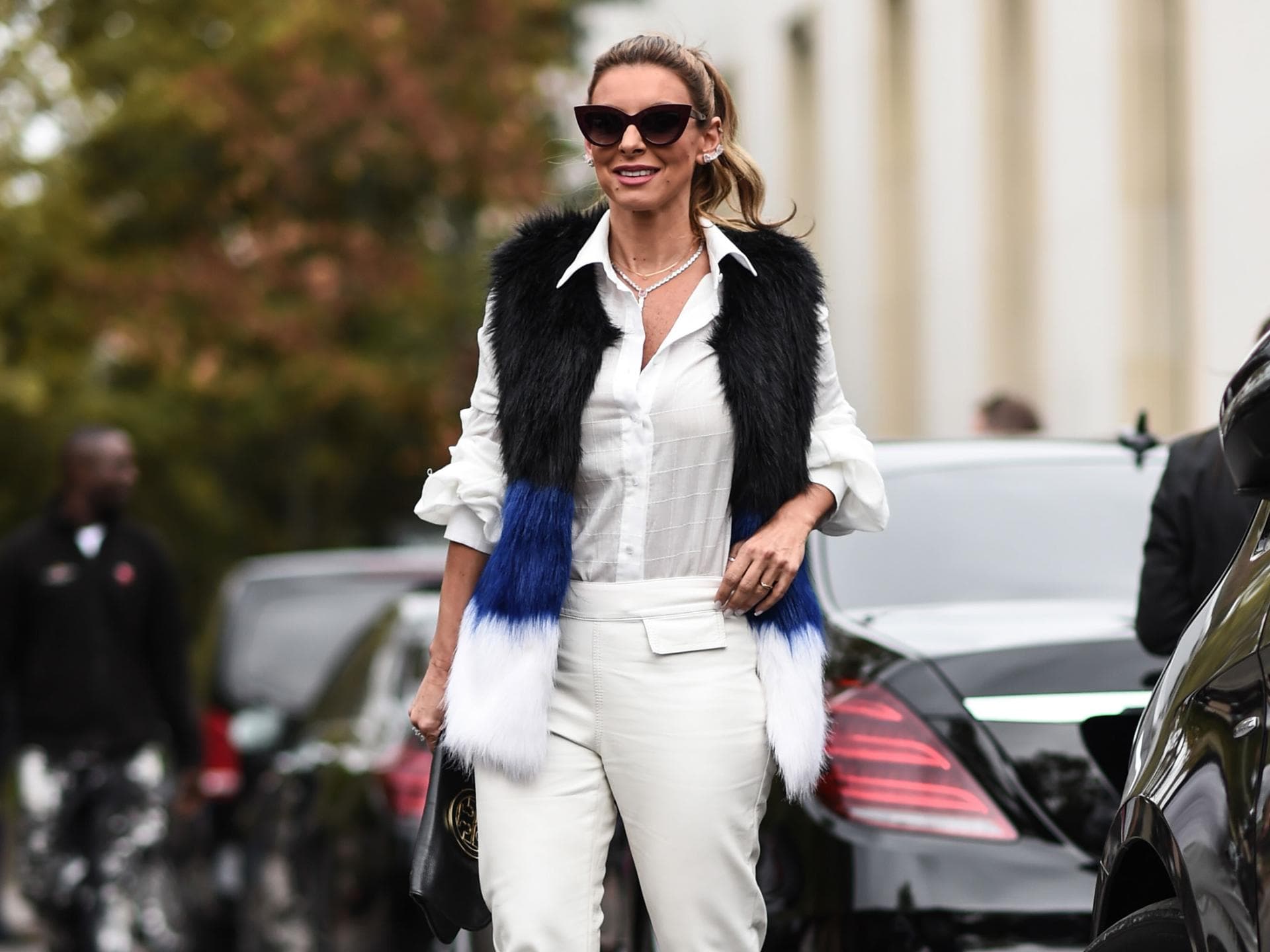 So kombiniert ihr die Kunst-Fell-Westen für kalte Tage