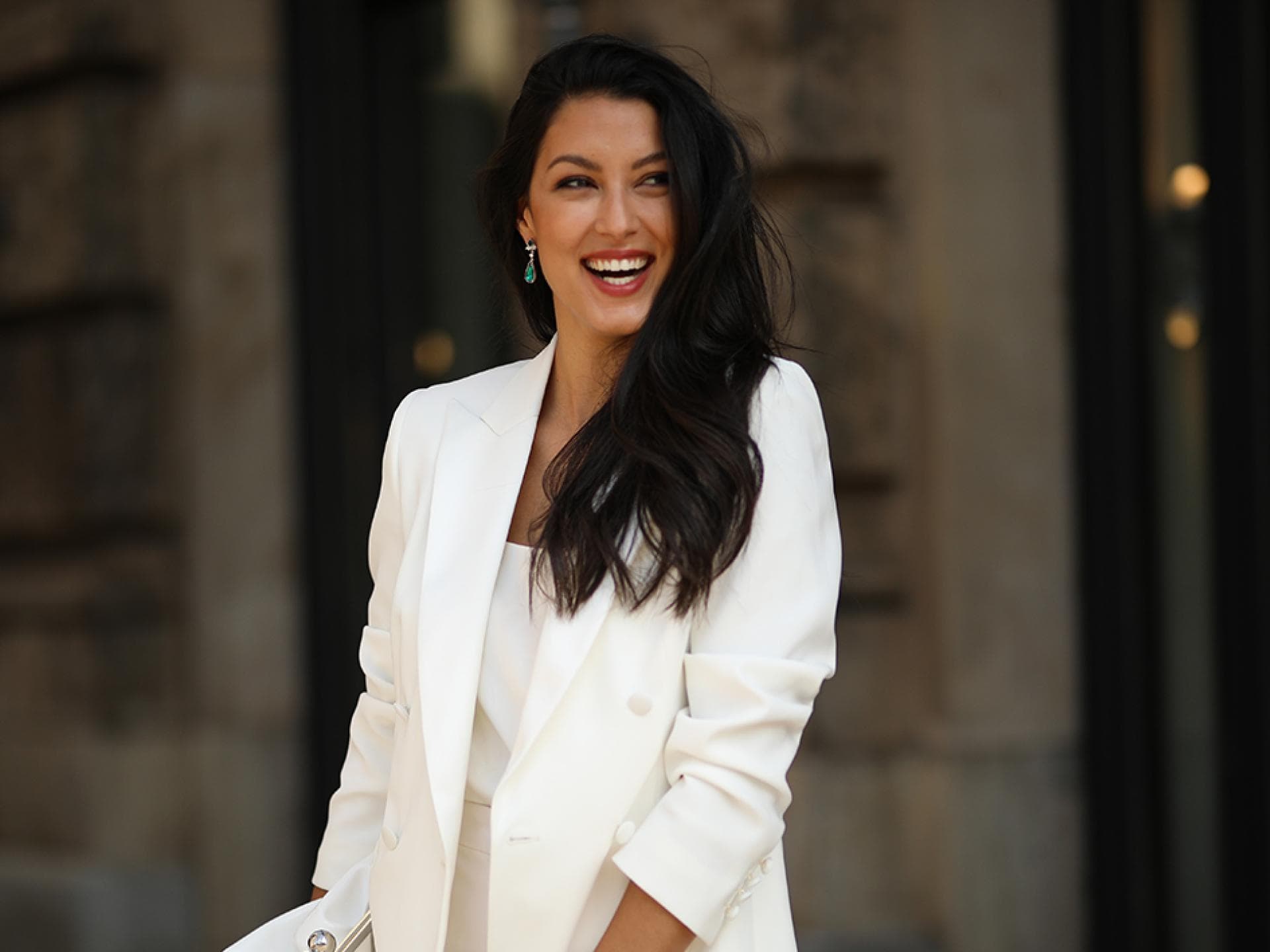 Bei schönstem Sonnenschein lässt sich Rebecca ihr Getränk schmecken und dabei liefert sie uns die perfekte Vorlage für ein gelungenes Frühlings-Outfit. Jeans, Blazer und ein leichter Pullover bilden die Basis und werden durch eine Statement-Sonnenbrille und coole Loafers aufgewertet. Der Look der Moderatorin ist somit der beste Beweis, dass mit den richtigen Accessoires ein simples Outfit äußerst stilvoll aussehen kann.