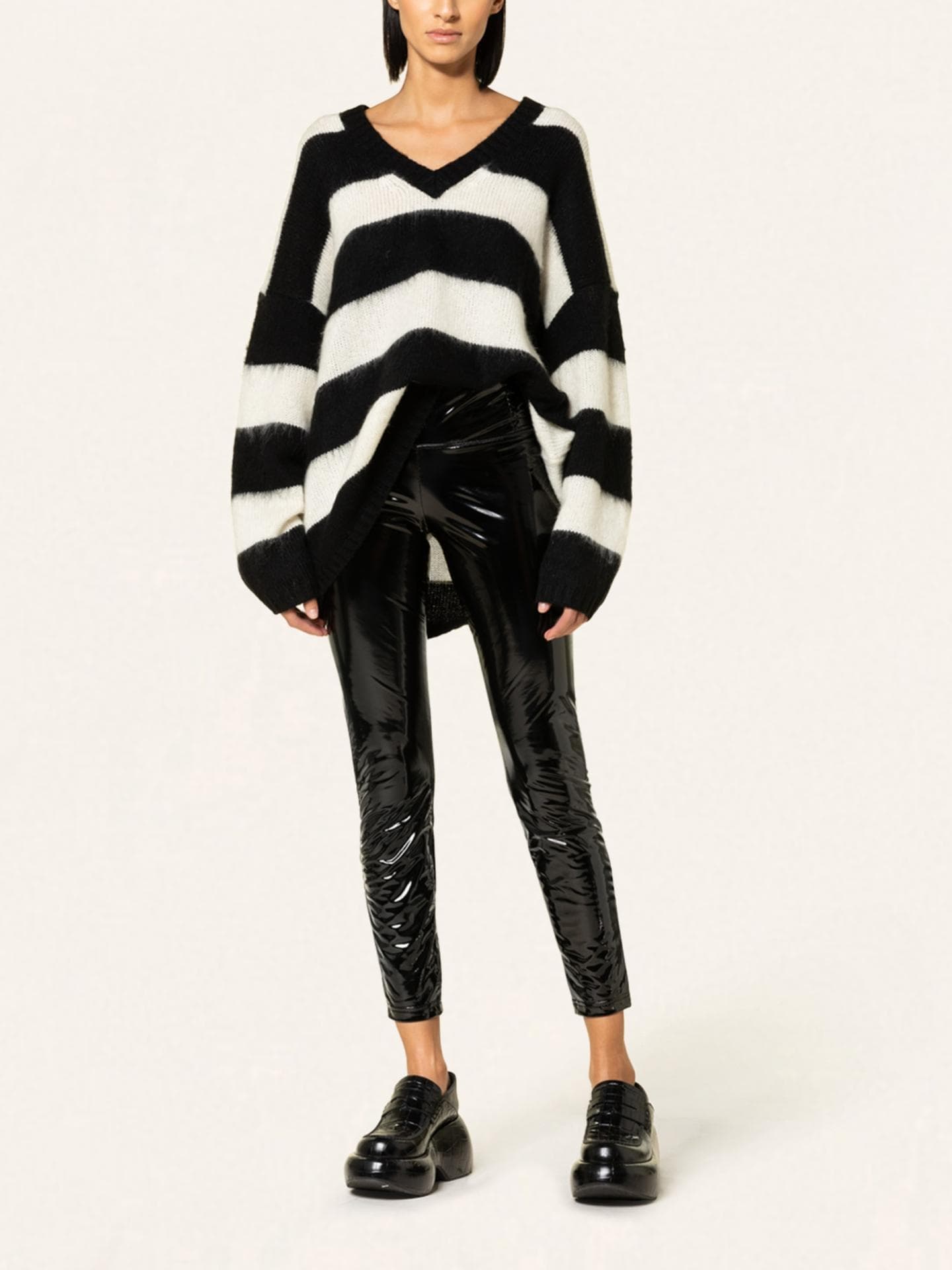 Ebenfalls ein Traum ist das nächste Modell, das von LeGer, der Brand von Model und Designerin Lena Gercke stammt. Eine enge Passform und ein hoher Bund machen die schwarze Leggings aus. Besonders stylisch sind die Schlitze am Ende der Hose, die lassen sich cool und lässig mit Sneakern oder Stiefeletten kombinieren. Obendrauf gibt es zum Look einen dunklen Blazer aus Satin und euer neues Lieblingsoutfit steht. Eine weitere Leggings und alle Details zu den beiden Hosen haben wir in der Bildergalerie für euch zusammengestellt. Happy Shopping.