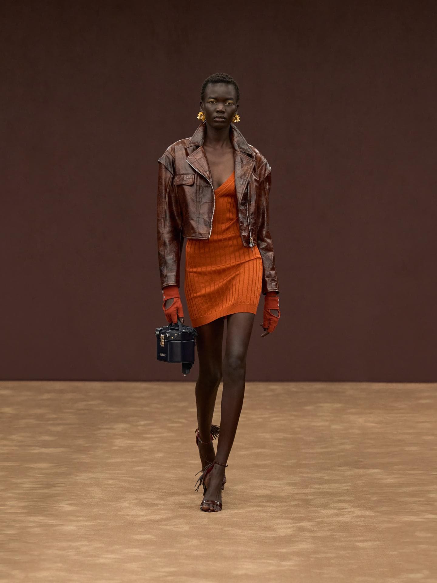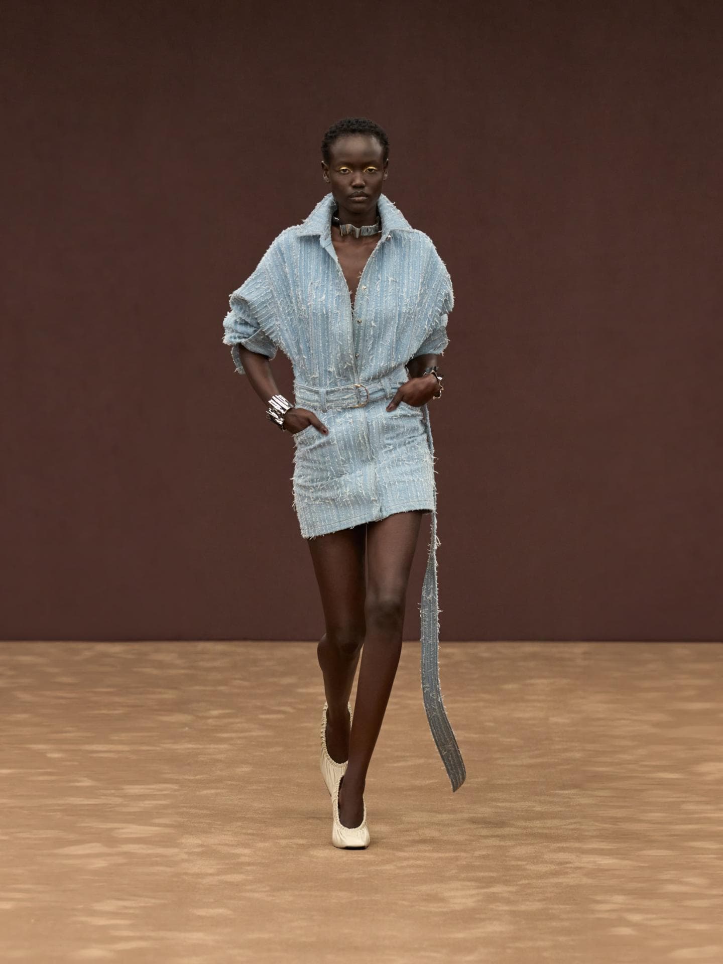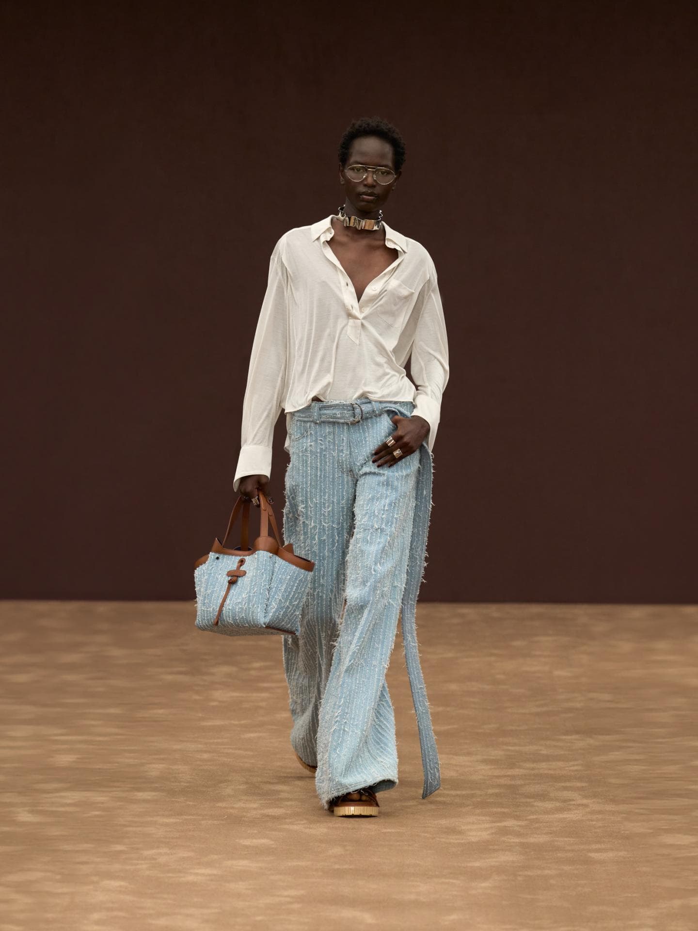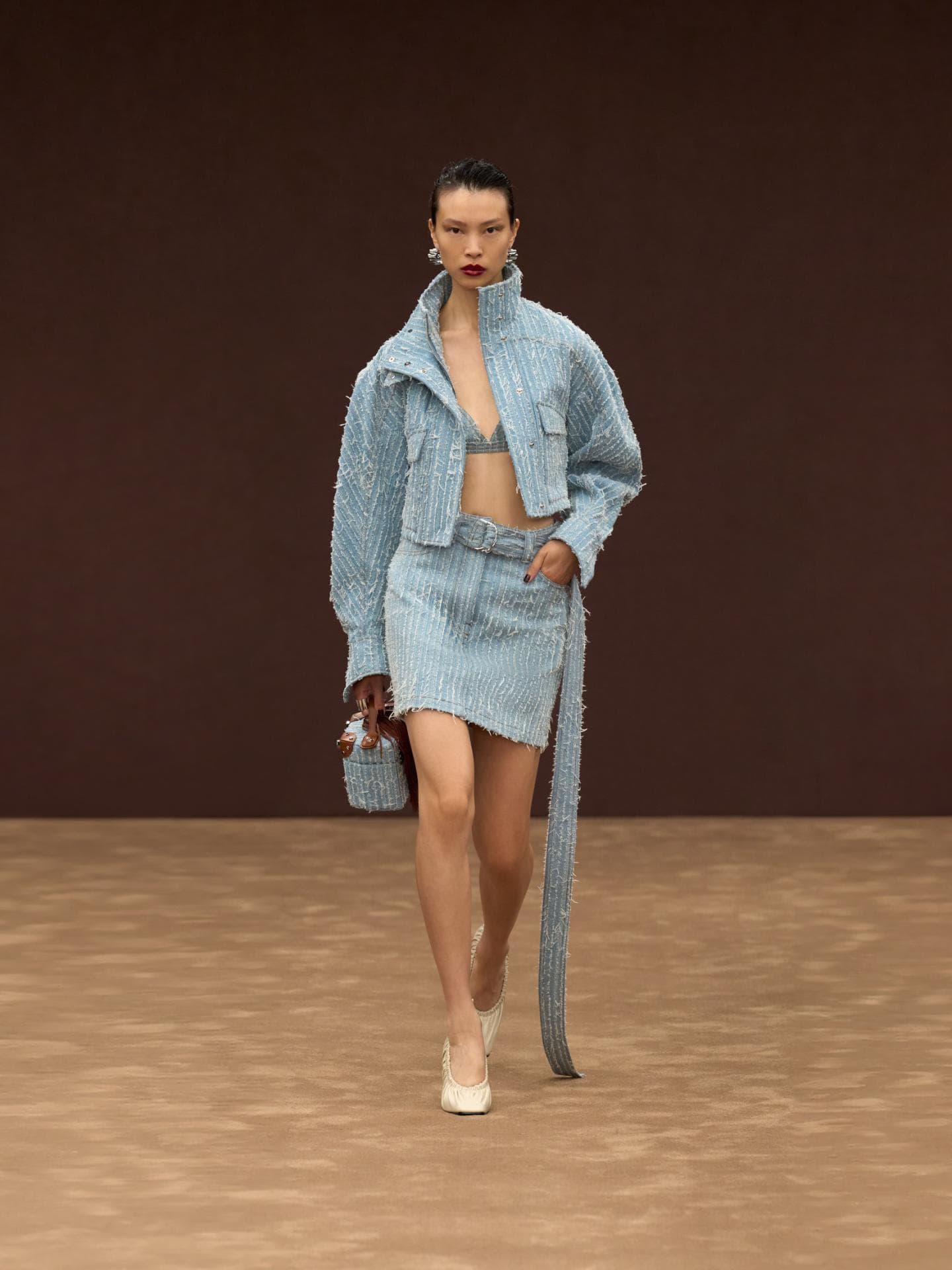 Auch Denim wird bei Ferrari großgeschrieben: Eine Vielfalt an fransigen Jeans-Looks dominierte den Runway. Egal, ob Denim-Allover, oder in Kombination mit braunen Lederakzenten – diese Outfits wandern direkt auf unsere Inspo-Liste für die kommende Saison.
