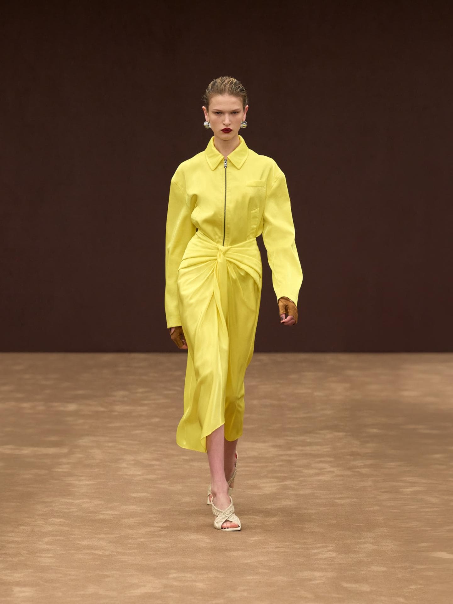 Vor allem bei Kleidern und Röcken setzte der Kreativkopf fließende Stoffe wie Seide ein, um die Looks bildlich zum Leben zu erwecken. Wer dem schicken Outfit einen modernen Twist verpassen möchte, der Kombiniert dazu eine Oversize-Sonnenbrille oder coole Lederhandschuhe.