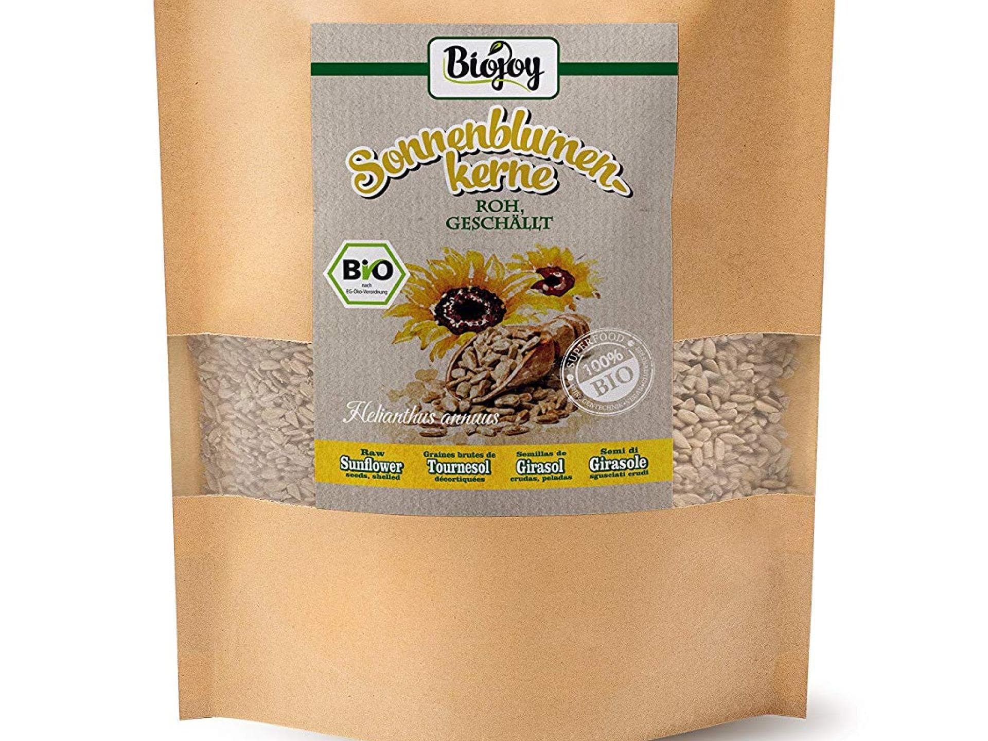 Das Eiweiß, welches in den Sonnenblumenkernen steckt, sorgt dafür, dass wir uns lange satt fühlen. Unnötige Heißhungerattacken, die uns dazu verleiten Ungesundes zu essen, werden somit gestoppt. Sonnenblumenkerne enthalten zwar gesunde Omega-6-Fette, allerdings dürft ihr diese nicht in hohen Mengen zu euch nehmen.Um mit diesen Kernen abzunehmen, solltet ihr sie nur in kleinen Mengen in euren Speiseplan einbeziehen und auf jeden Fall mit Lebensmittel, die Omega-3-Fettsöuren enthalten, ausgleichen. Stimmt so ein Gleichgewicht aus beiden Fetten nicht, kann es zu Entzündungen im Körper kommen. So könnt ihr also zusätzlich zu Sonnenblumenkernen auch Leinsamen oder Leinöl in euer Müsli, Smoothie, Salat oder Suppe hinzufügen. Diese beinhalten nämlich Omega-3-Fettsäuren, die eine ungesunde Überdosis der Kerne verhindern und zusätzlich bei der Gewichtsreduzierung helfen. Um von den gesunden Nährstoffen zu profitieren, reicht eine kleine Menge des Superfoods also vollkommen aus und ist um einiges gesünder. Wer jetzt Lust auf die leckeren Kerne bekommen hat, kann sich eine Packung der Biojoy Bio-Sonnenblumenkerne für ca. 13 Euro zulegen.