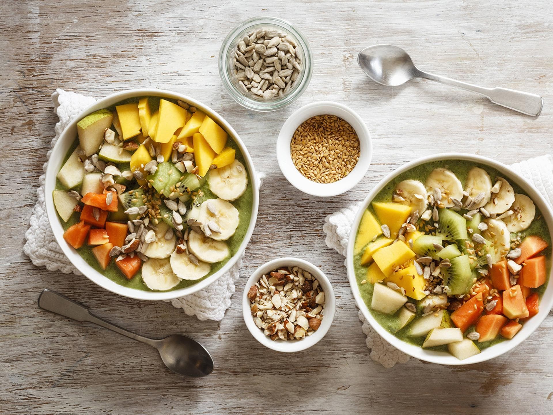 Wir kennen sie alle: Die Sonnenblume, die sich immer Richtung Sonne dreht ist ein wahrer Klassiker, unter Blumenkenner. Und nicht nur sie, auch die Kerne, die zwischen ihren gelben Blütenblättern entstehen, sind wahre Favoriten in der Küche. Sonnenblumenkerne sind ein perfekter Ersatz für tierische Eiweißquellen, da sie reichlich damit ausgestattet sind und sogar mehr Eiweiß als manches Fleisch oder Fisch haben. Das macht sie gerade unter Vegetarier und Veganer so beliebt. Nicht nur das – das Superfood ist außerdem noch reich an Eisen, Kupfer, Zink, Magnesium und Vitamin E. Hinzu kommt noch, dass sie reich an Omega-6-Fettsäuren sind, die herrvoragend beim Abnehmen helfen.