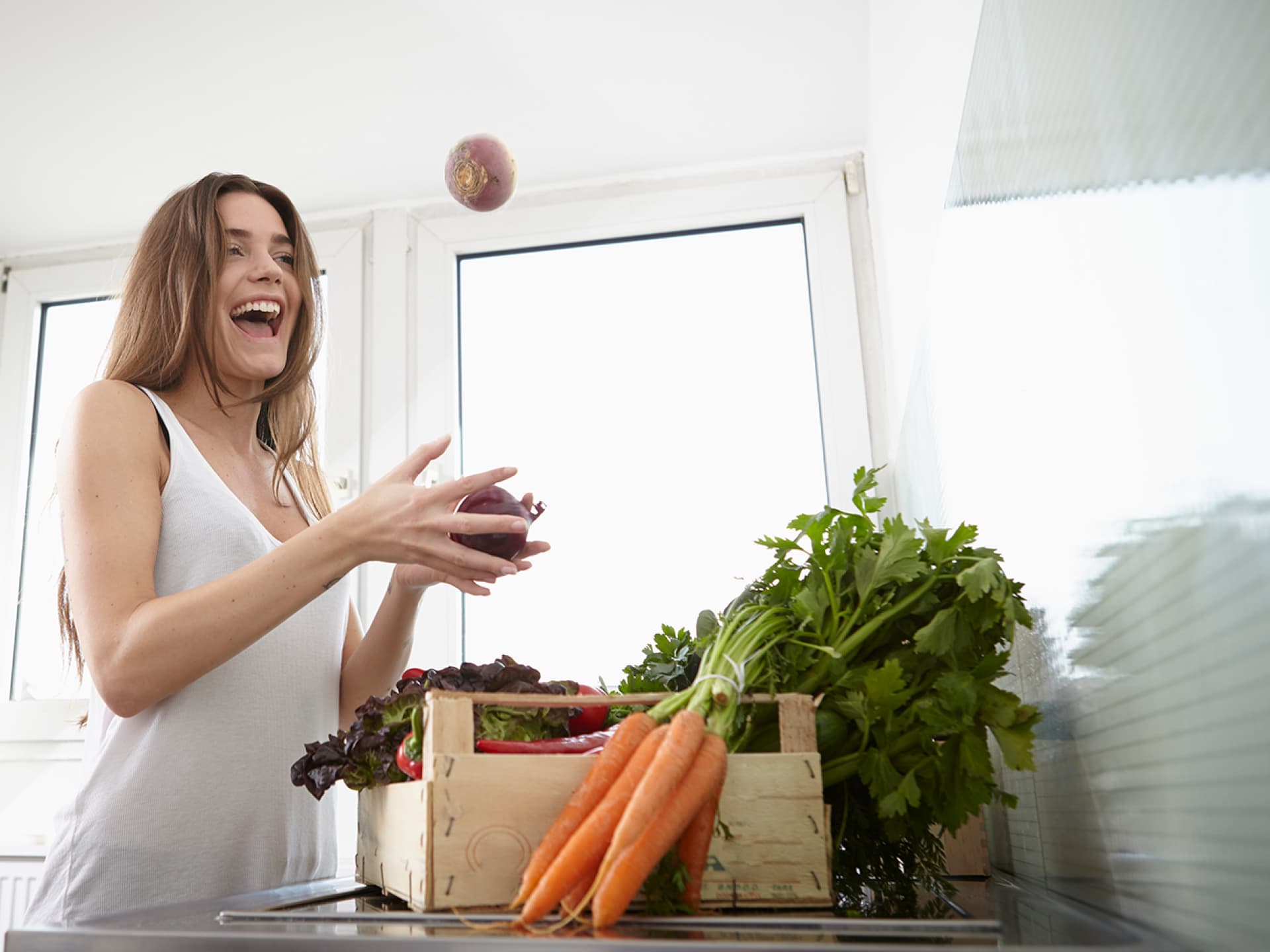 Um gesünder zu leben reicht es oft schon die gesunden Lebensmittel gut sichtbar in der Küche zu positionieren. Das erinnert euch daran, euch ausgewogen zu ernähren. Platziert Obst und Gemüse beispielsweise offen in der Küche oder verstaut sie in durchsichtigen Plastikboxen im Kühlschrank. Kalorienfallen solltet ihr hingegen so weit weg wie möglich lagern, denn hier gilt: "Aus den Augen aus dem Sinn." Habt ihr statt Schokolade, Chips und Co. gesunde Lebensmittel im Blickfeld, werdet ihr eher zu ihnen greifen und so automatisch abnehmen. 🥗