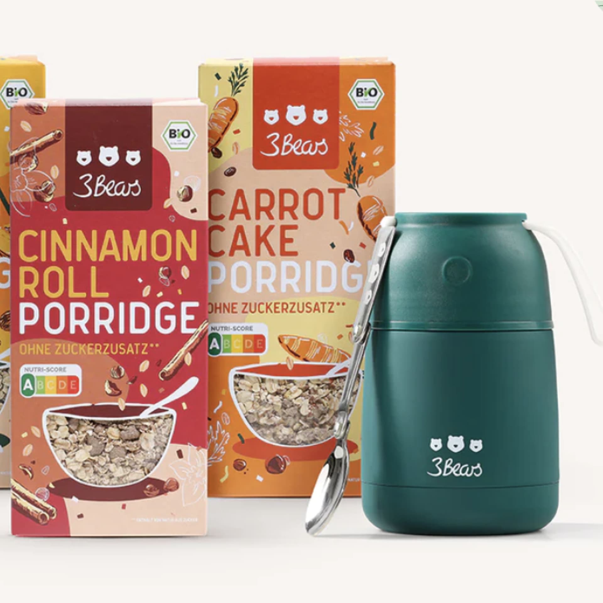 Auch Leckermäulchen sollen an Weihnachten nicht zu kurz kommen. Das Winter-Thermobecher-Bundle von 3Bears ist das richtige Präsent für alle, die gutes Porridge lieben. Enthalten sind neben dem auslaufsicheren Thermobecher drei Beutel der neuen Winter-Bio-Sorten – yummi.